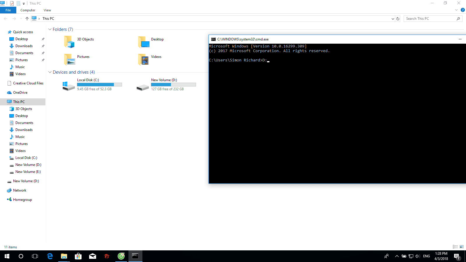- Bước 2: Di chuyển cmd đến thư mục usb của bạn bằng cách lệnh “tên ổ:” ví dụ như dưới đây do ổ usb của người dùng là ổ D nên lệnh sẽ là D:.