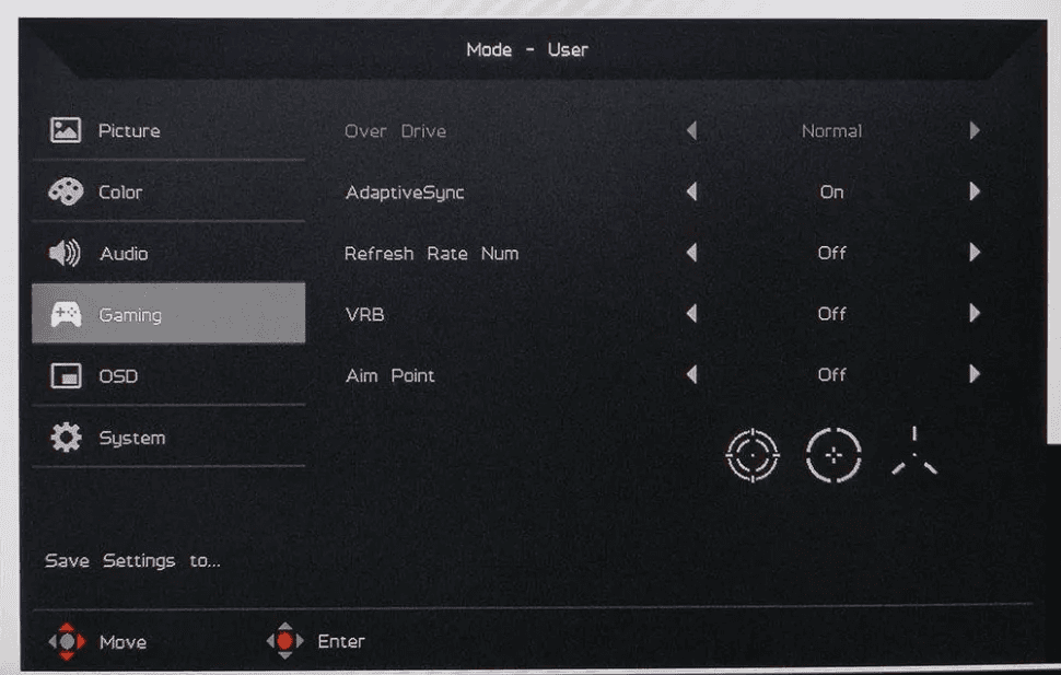 OSD của XB273U-NV được chia thành 6 menu phụ và cung cấp một loạt tùy chọn chơi game, điều chỉnh chất lượng hình ảnh và tiện ích. Tám chế độ được chỉnh sẵn tương ứng với các chế độ chơi khác nhau.