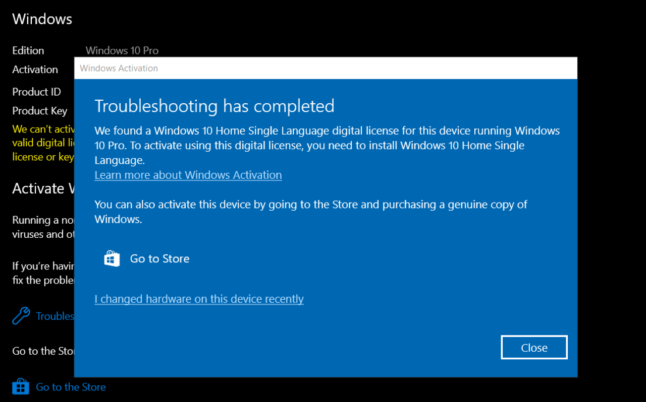 - Bước 2: Chọn Troubleshoot nếu thấy thông báo Windows chưa kích hoạt.