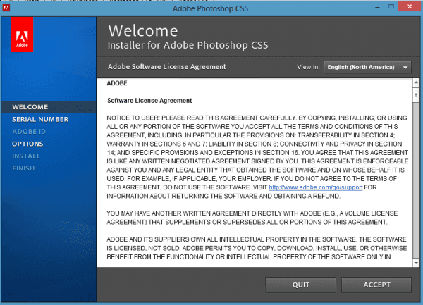 Bước 1: Tải phần mềm về máy, và giải nén, sau đó mở thư mục vừa giải nén, vào folder Adobe 5, click vào Setup để tiến hành cài đặt, sau đó click vào Accept: