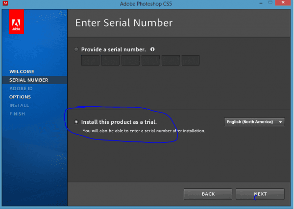 Bước 2: Tick vào mục Install this product as a trial sau đó click vào Next :