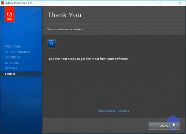 Vậy là các bước cài đặt Photoshop CS5 đã xong, để bắt đầu sử dụng các bạn có thể click ngay vào biểu tượng ngoài destop để khởi chạy chương trình.