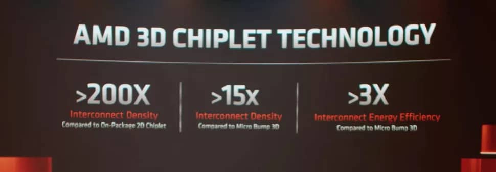 AMD đã sử dụng cách tiếp cận liên kết lai với TSV cung cấp hơn 200 lần mật độ kết nối của chiplet 2D, cải thiện 15 lần về mật độ kết nối so với triển khai 3D vi mô và cải thiện gấp 3 lần về hiệu quả năng lượng kết nối.