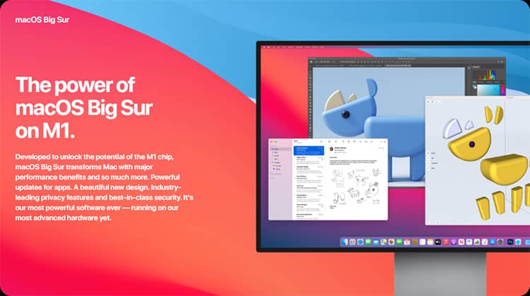 Một phần cứng tốt phải đi kèm với một phần mềm chất lượng. Hệ điều hành macOS BigSur tận dụng tối đa sức mạnh phần cứng của vi xử lý M1. Mang đến trải nghiệm người dùng tuyệt vời dù là trong công việc hay giải trí. Thay đổi giao diện người dùng mới, bổ sung thêm thanh menu và trung tâm điều khiển. Thay đổi lại thiết kế biểu tượng của trang tính, hệ thống âm thanh và trung tâm thông báo tất cả đều chờ bạn trên chiếc Apple Mac Mini M1 này.