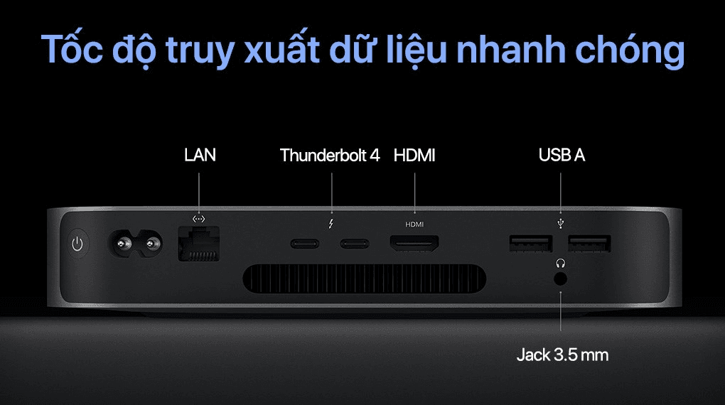 Mac Mini hỗ trợ nâng cấp RAM lên đến 16GB hoặc 24GB và ổ cứng SSD lên đến 2TB, giúp người dùng dễ dàng mở rộng dung lượng lưu trữ và cải thiện hiệu suất. Ổ cứng SSD chuẩn PCIe mang lại tốc độ truy xuất dữ liệu nhanh chóng, giúp tăng cường hiệu suất làm việc và giải trí.