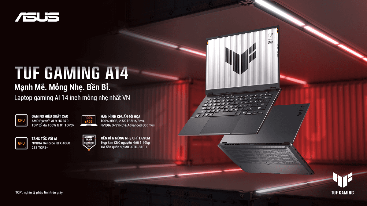 ASUS TUF Gaming A14 (2024): Laptop gaming AI 14-inch mỏng nhẹ nhất Việt Nam