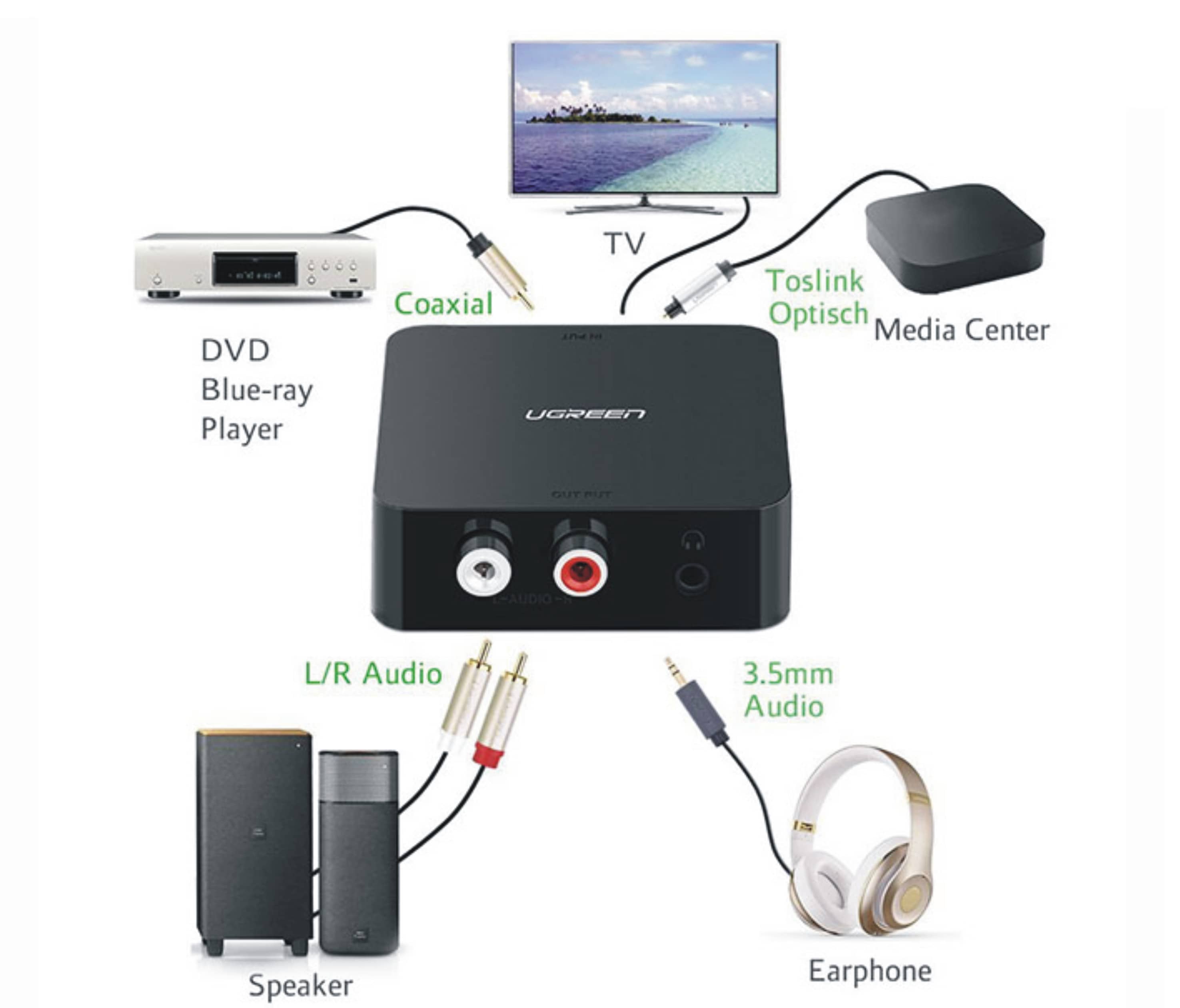 Bộ chuyển quang, optical và Coaxial to RCA Ugreen 30523 sử dụng rất đơn giản, với đầu vào là tín hiệu âm thanh Digital, Coaxial từ Smart Tivi, Android TV Box,... và đầu ra là tín hiệu Audio R/L để kết nối các thiết bị âm thanh như loa hoặc Amply, thiết bị chỉ cần Cắm là Chạy (Plug and Play) vô cùng dễ dàng và hiệu quả.