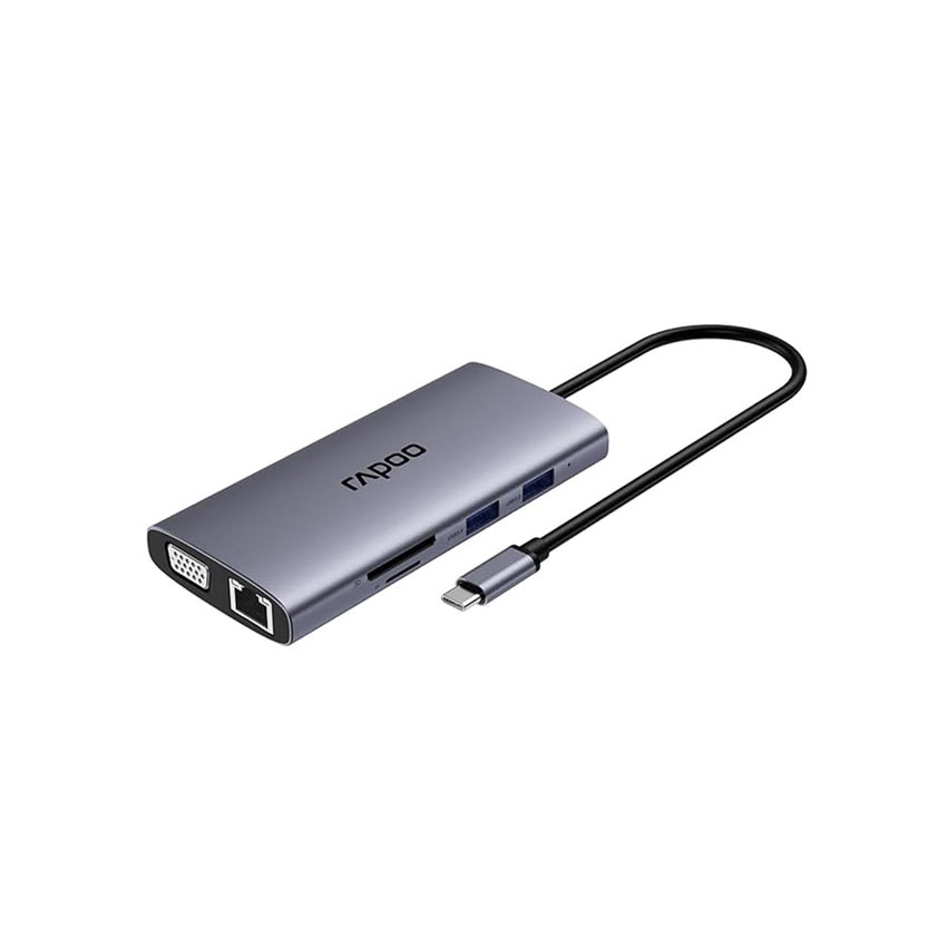 Rapoo XD101 USB-C hub 9in1: HDMI, VGA, LAN Gigabit, USB 3.0, PD, TF, audio. Kết nối đa thiết bị tiện lợi cho laptop. Mua tại HACOM!