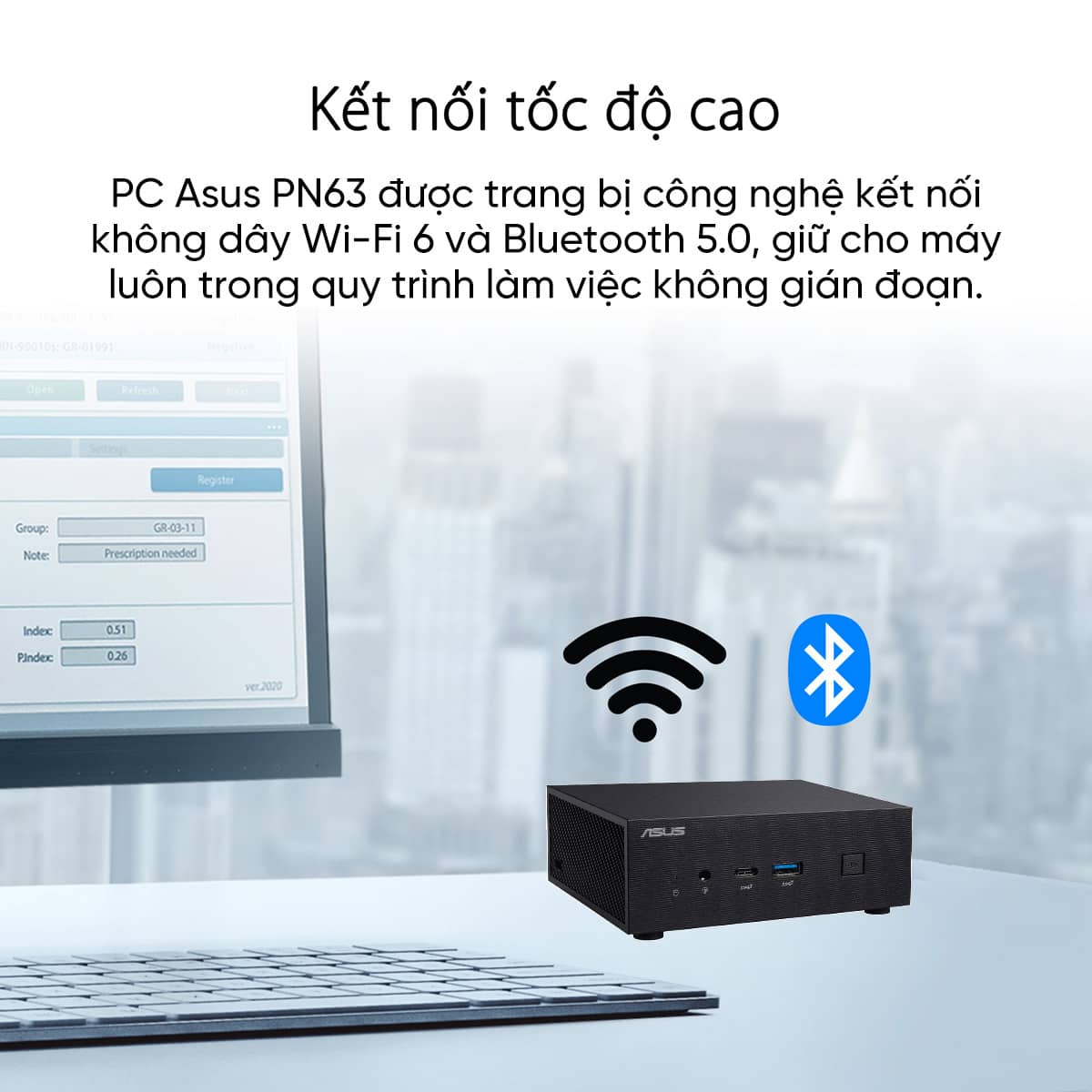 PC Asus PN63 không chỉ sở hữu hiệu năng mạnh mẽ mà còn được trang bị hệ thống kết nối không dây hiện đại. Với Wi-Fi 6 và Bluetooth 5.0, bạn có thể hoàn toàn yên tâm về tốc độ, độ ổn định và khả năng kết nối của thiết bị này. Đây là một lựa chọn tuyệt vời cho những người dùng cần một chiếc máy tính nhỏ gọn, mạnh mẽ và tiện lợi để làm việc và giải trí.