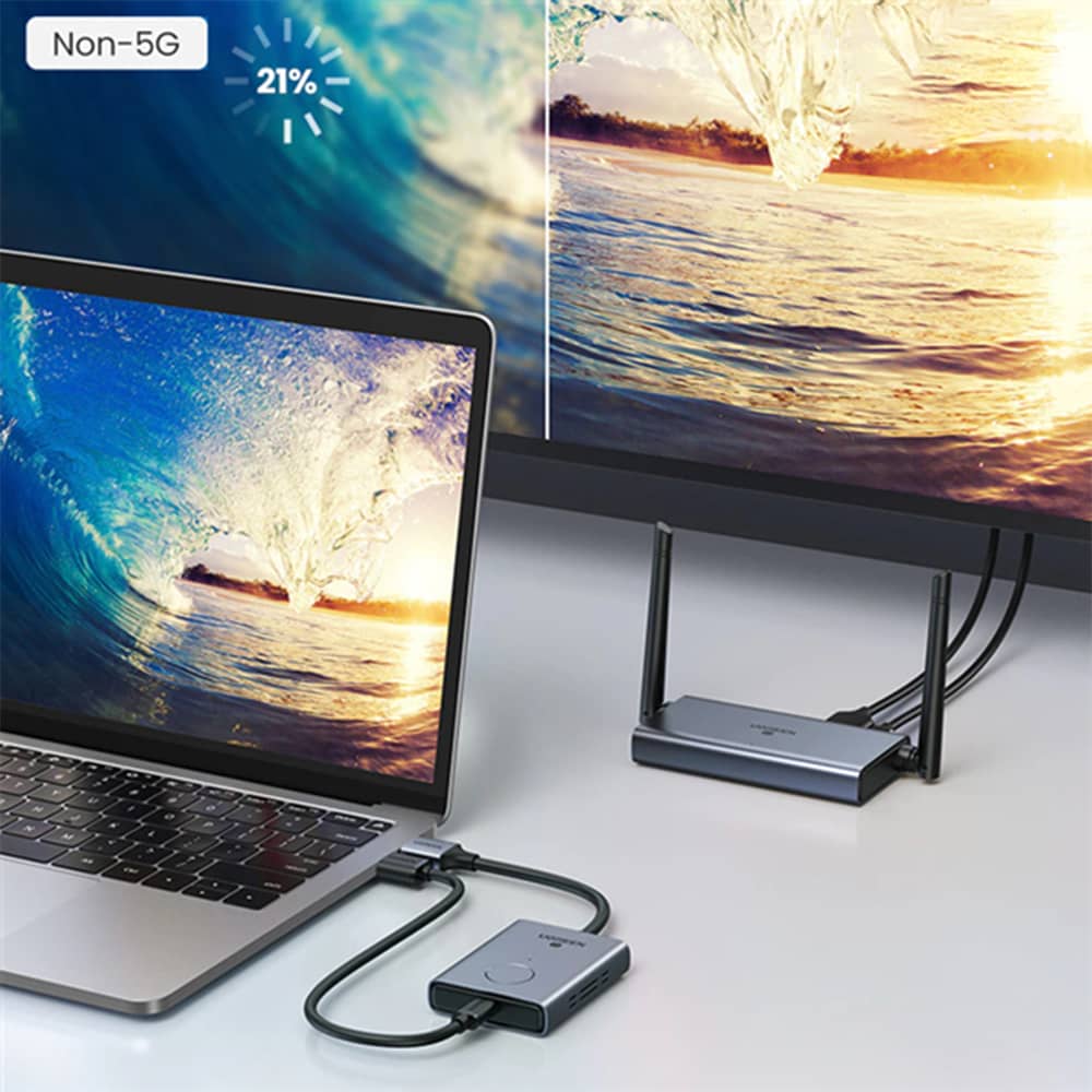 Bộ thu và phát bộ mở rộng HDMI không dây UGREEN cho phép cáp video từ các thiết bị đầu vào HDMI như đầu phát video và PC được truyền video không dây đến các thiết bị đầu ra HDMI như màn hình và máy chiếu ở khoảng cách xa. Bằng cách nối dây cáp không dây, bạn cần đơn giản hóa hệ thống dây cáp video cồng kềnh trong không gian của bạn.
