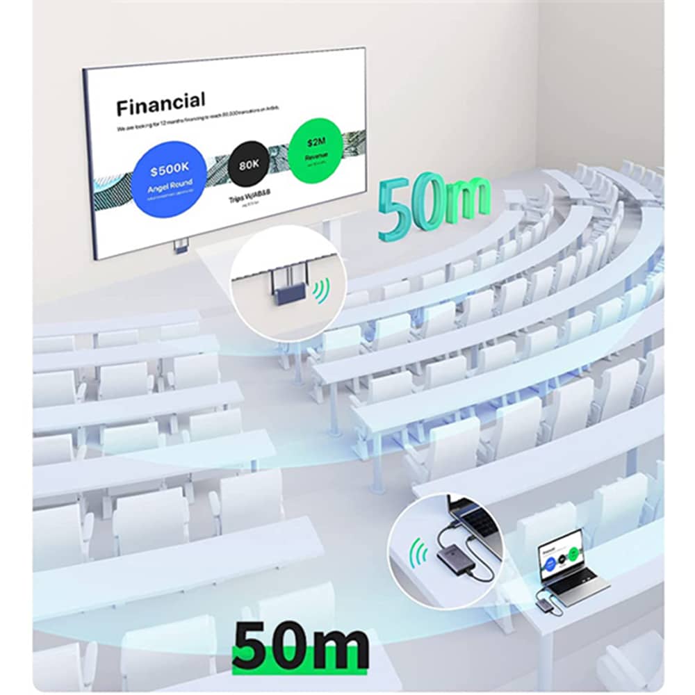 Bộ phát HDMI không dây có mô-đun WIFI 5G tích hợp để hỗ trợ truyền ổn định. Sau khi được kết nối, nó sẽ chiếu ngay lập tức, cho phép bạn phản chiếu không dây và trình bày tài liệu từ máy tính của mình trong phòng hội thảo.