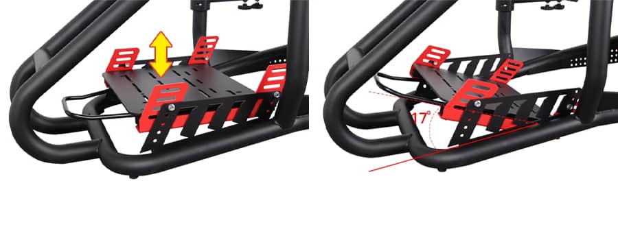 Đế gắn bàn đạp của Art Cockpit PRO được gia cố chắc chắn từ bên trong. Cùng với đó là khả năng điều chỉnh vị trí, góc nghiêng nhanh chóng để có thể tạo vị trí đạp bàn đạp thoải mái nhất trong mọi tựa game. Các lỗ gắn bàn đạp tương thích tốt với nhiều thương hiệu như Logitech, Thrustmaster, Fanatec, Moza, VNM, v.v..