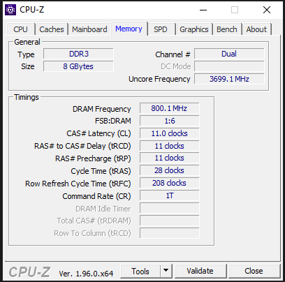 Như ở trên hình, các bạn có thể thấy DRAM Frequency trên máy của mình là 800, điều này có nghĩa là bus RAM của máy mình là 1600.