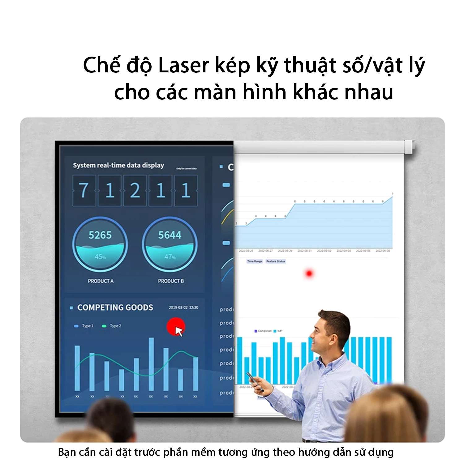 Phạm vị chiếu lazer tối đa lên tới 100m, phạm vi điều khiển 50m.