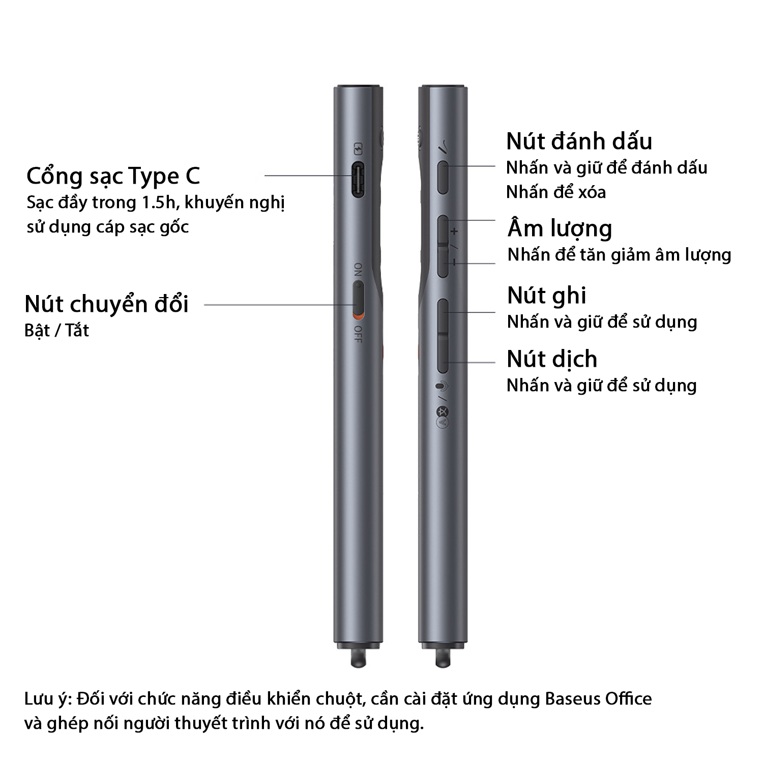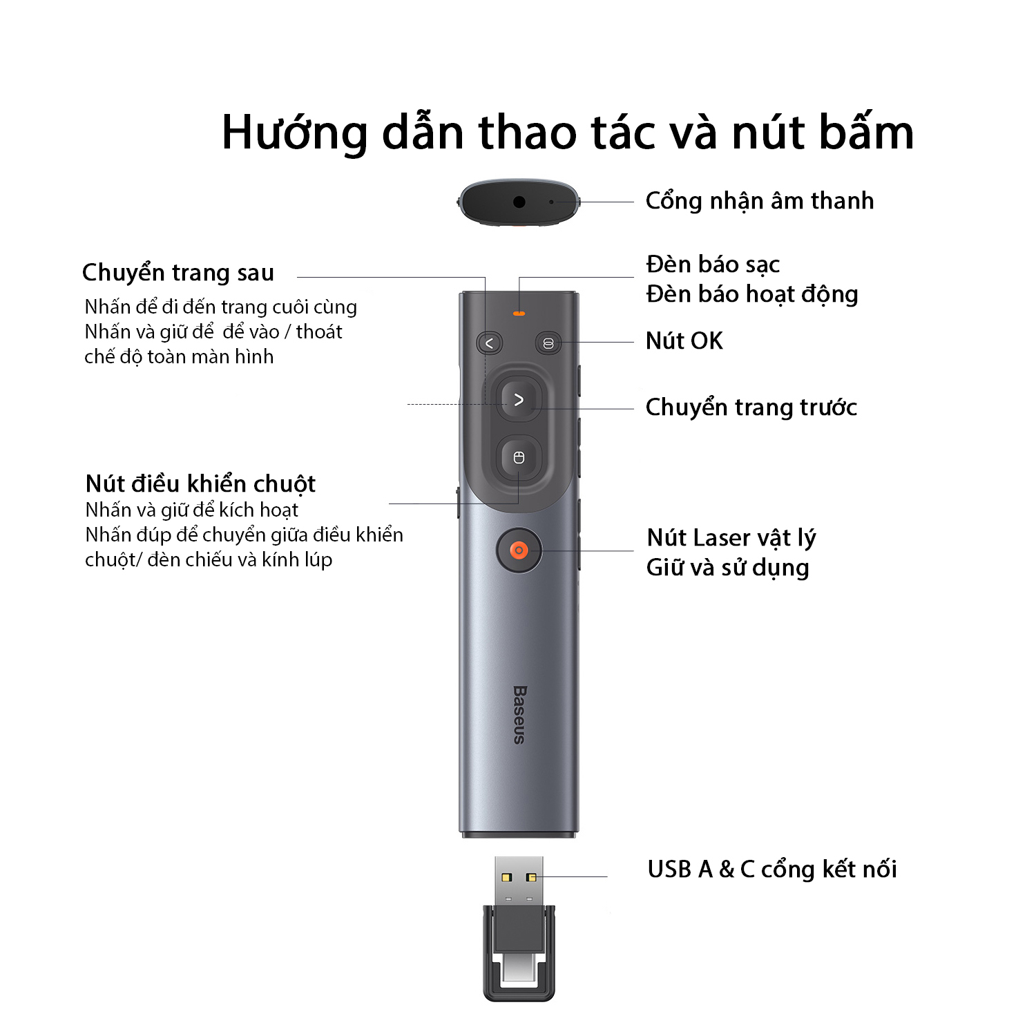 Với tính năng điều khiển tự xa chuột của bạn một cách thông mình mà không cần hỗ trợ từ một bạn khác để điều khiển các tác vụ. Đây được xem là cải tiến lớn nhất của Baseus trang bị lên bút trình chiếu Baseus Orange Dot AI. Điều khiển phóng to, nhỏ giúp người dùng trình bày rõ ràng, trực quan không bỏ sót nội dung nào.