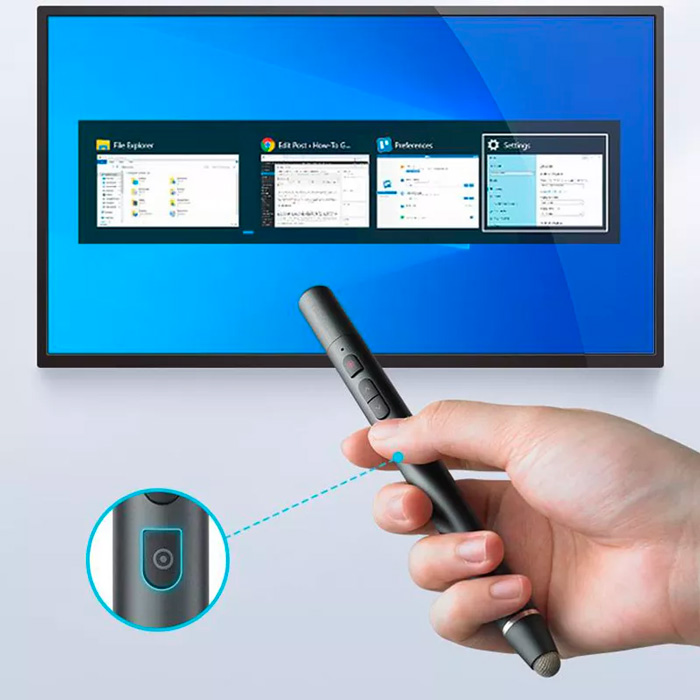 Ngoài ra, XR200 hỗ trợ 3 chế độ lật trang, mô phỏng 4 phím hướng của bàn phím là Pgup, Pgdn, tổng cộng có 3 chế độ lật trang, phù hợp với các hệ máy và cách lật trang phần mềm khác nhau. Cửa sổ đa nhiệm, chuyển đổi một phím Trong khi nói, bạn cần gọi các cửa sổ khác như video, hình ảnh,… và bạn không cần sử dụng chuột để thao tác. Bút trình chiếu Rapoo XR200 được trang bị phím đa chức năng, nhấn và giữ chức năng Alt + Tab để hiển thị giao diện đa nhiệm, sau đó nhấp đúp để chọn giao diện bạn cần chuyển. Nhỏ và di động,