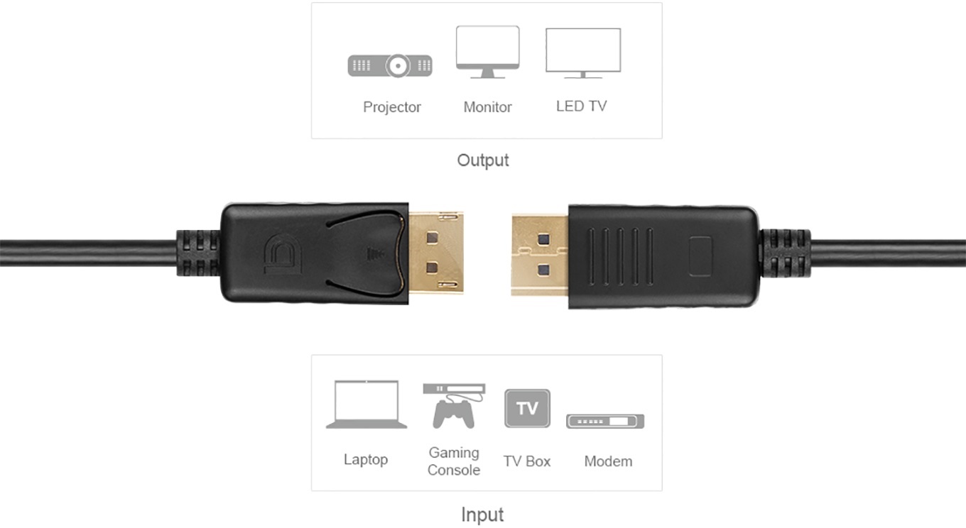 Tương thích cực tốt Cáp DisplayPort với tất cả các thiết bị sử dụng cổng DisplayPort như máy tính PC, máy tính xách tay, Set-Top box, màn hình, ti vi, máy chiếu, máy nghe nhạc, Xbox, PS4... |