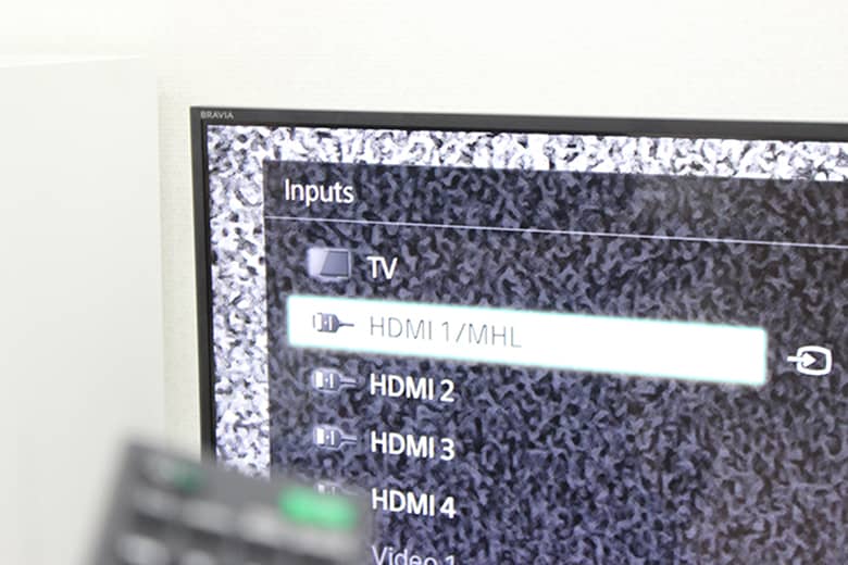 Bước 3: Chọn nút nguồn vào trên Remote. Lựa chọn tín hiệu đầu vào là HDMI/ MHL. Khi đó, bạn đã thực hiện thành công việc kết nối điện thoại với tivi qua cổng HDMI.