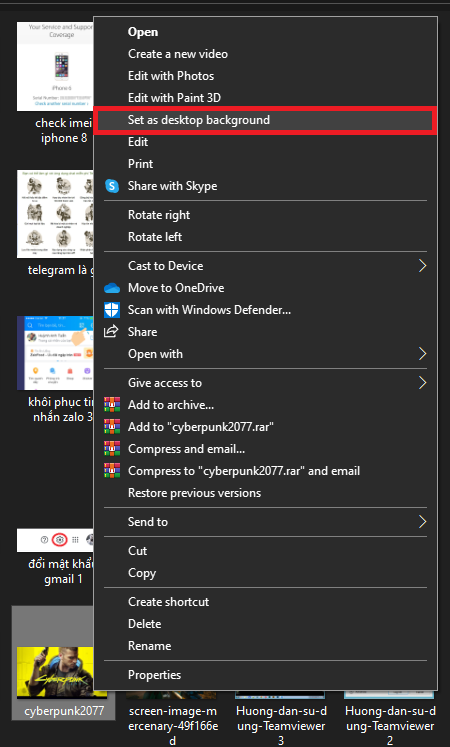 Mở thư mục chứa ảnh muốn đặt làm hình nền > Nhấp chuột phải vào ảnh và chọn Set as Desktop Background.