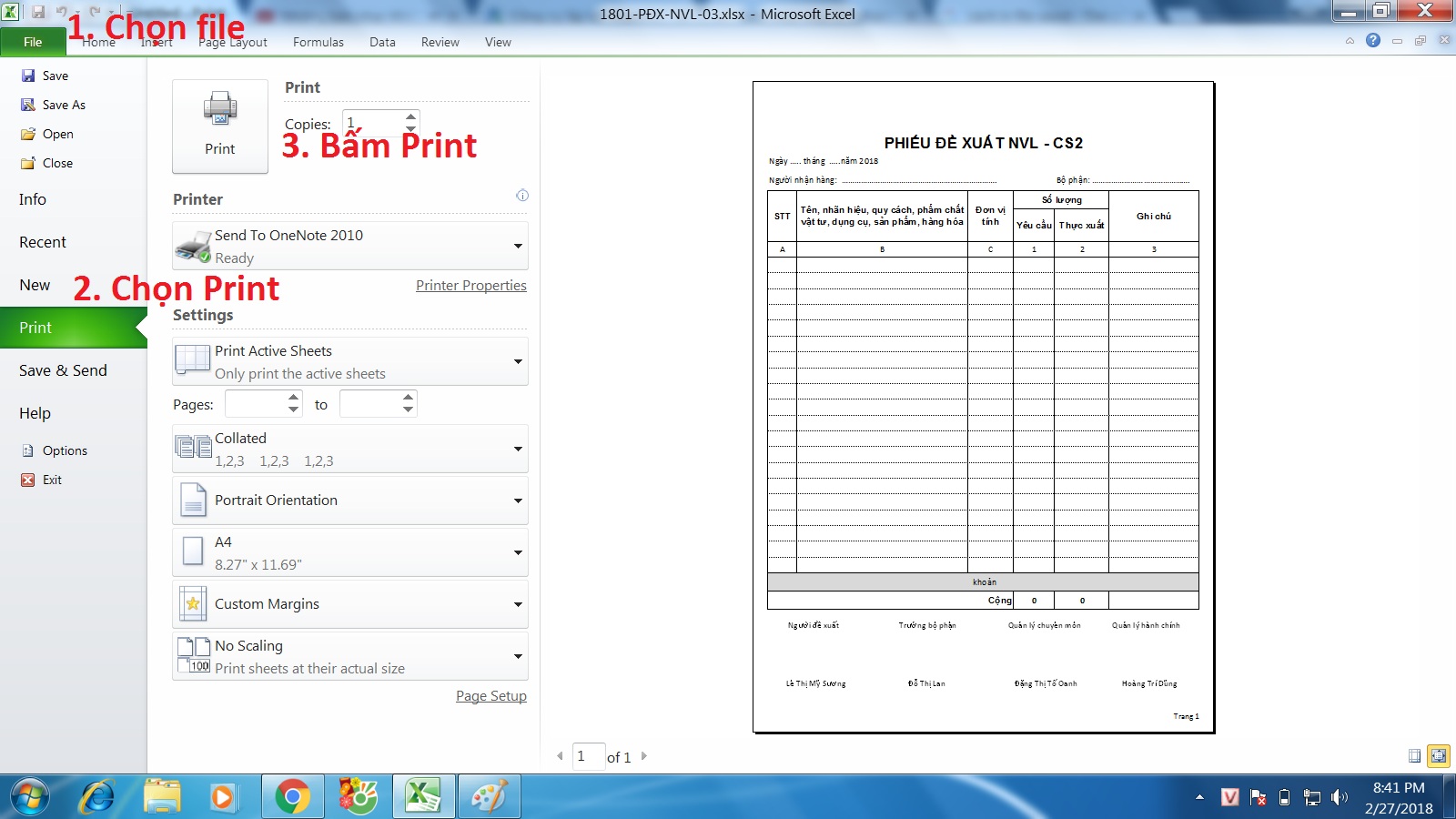 Cách 2: Mở file tài liệu các dạng word, excel, Pdf .... lên chọn File > Print