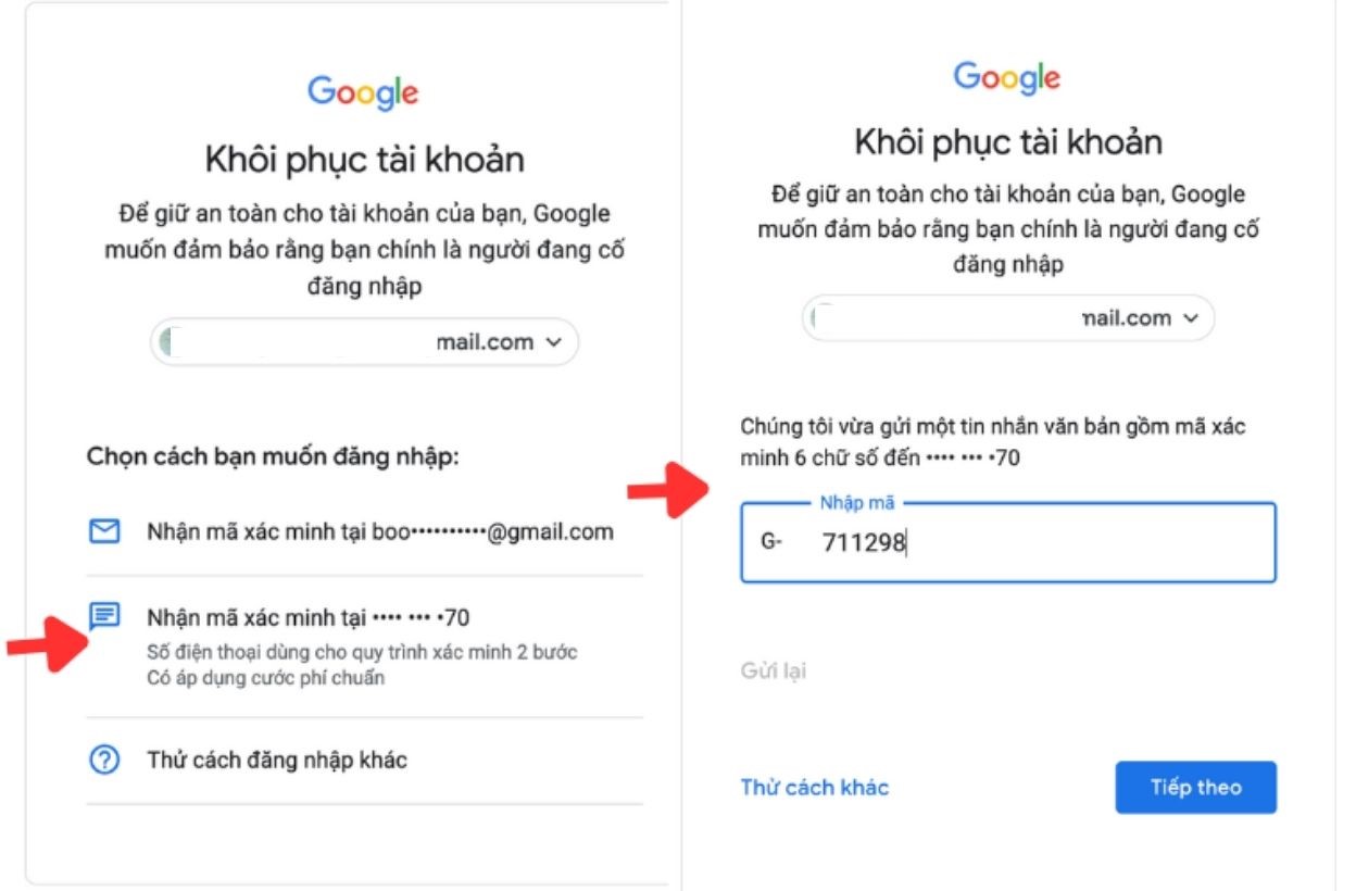 - Bước 3: Đăng nhập vào email khôi phục, kiểm tra hộp thư đến hoặc thư mục spam để lấy mã xác minh 6 chữ số từ Google. Nhập mã này vào ô được yêu cầu trên trang khôi phục, rồi nhấn "Tiếp theo". Nếu mã đúng, bạn sẽ được chuyển đến trang đặt lại mật khẩu, hoàn tất quá trình khôi phục tài khoản.