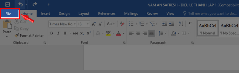 Bước 1: Mở phần mềm Word lên và chọn File