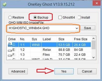 Bạn có thể đặt tên File ghost và chọn vị trí lưu file cho dễ nhớ, sau đó ấn Save rồi chọn Yes để thực hiện.