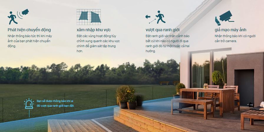 Camera IP TP-Link VIGI C340I cung cấp khả năng phát hiện thông minh hơn có thể phát hiện xâm nhập, phát hiện loại bỏ đối tượng hoặc thông báo vượt qua ranh giới.