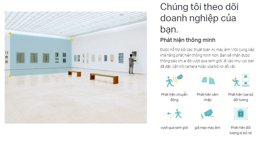 Camera IP quan sát TP-Link VIGI C430I giúp phát hiện thông minh và thông báo khi phát hiện chuyển động, phát hiện vượt qua ranh giới khi có người đi qua vùng cài đặt.