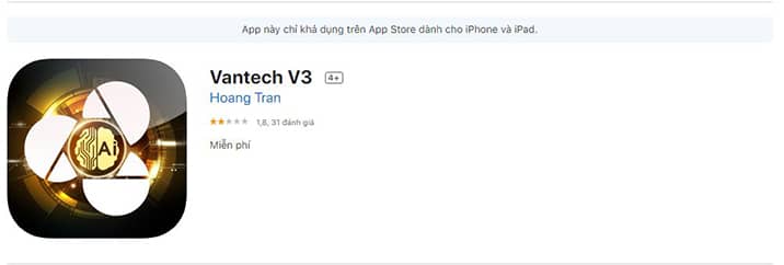 Trước tiên, các bạn tìm và tải ứng dụng có tên Vantech V3 trên App Store.