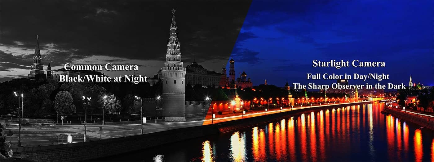 Công nghệ camera quan sát Starlight nghĩa là chỉ cần ánh sáng của những ngôi sao đã có thể giúp chúng ta nhìn thấy màu vào ban đêm.Trong nhà ta có thể sử dụng bóng đèn ngủ, ngoài trời chúng ta có thể tận dụng ánh sáng sao.Camera starlight có thể giúp chúng ta quan sát có màu mà không cần đến đến đèn Led hồng ngoại hoặc trang bị nhiều đèn chiếu sáng như camera quan sát hồng ngoại cổ điển.