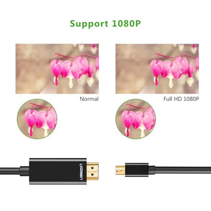 Cáp chuyển đổi Mini Displayport to HDMI cao cấp Ugreen là phụ kiện cao cấp giúp bạn dễ dàng kết nối Macbook, Mac, Laptop cổng Mini Displayport của bạn với màn hình máy chiếu, HDTV, và các thiết bị trình chiếu khác có hỗ trợ cổng HDMI với độ phân giải hình ảnh lên đến Full HD mang đến trải nghiệm hoàn hảo và sống động nhất cho hệ thống giải trí tại gia, làm việc và học tập của bạn.