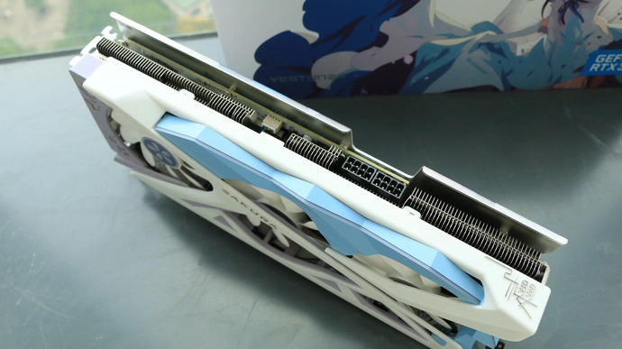 Phần tản nhiệt của Yeston RTX 3080 Sakura Hitomi được thiết kế bằng nhôm nguyên khối. Phần tản nhiệt được kết nối trực tiếp với GPU và tỏa nhiệt lượng ra theo hai bên.