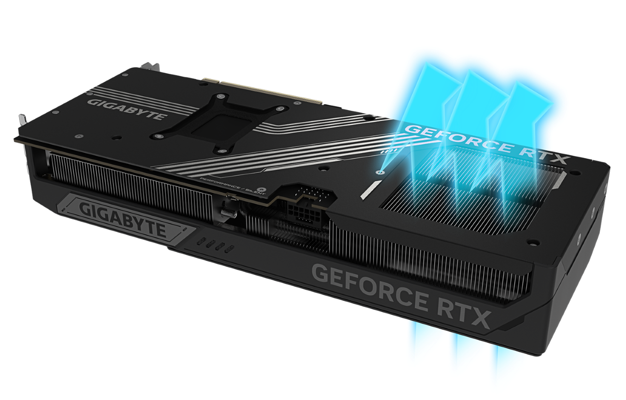 Hệ thống tản nhiệt WINDFORCE trên RTX 5080 đảm bảo GPU luôn mát mẻ, ổn định ngay cả khi tải nặng. Công nghệ quạt tiên tiến và gel dẫn nhiệt cấp máy chủ giúp card hoạt động êm ái và bền bỉ.