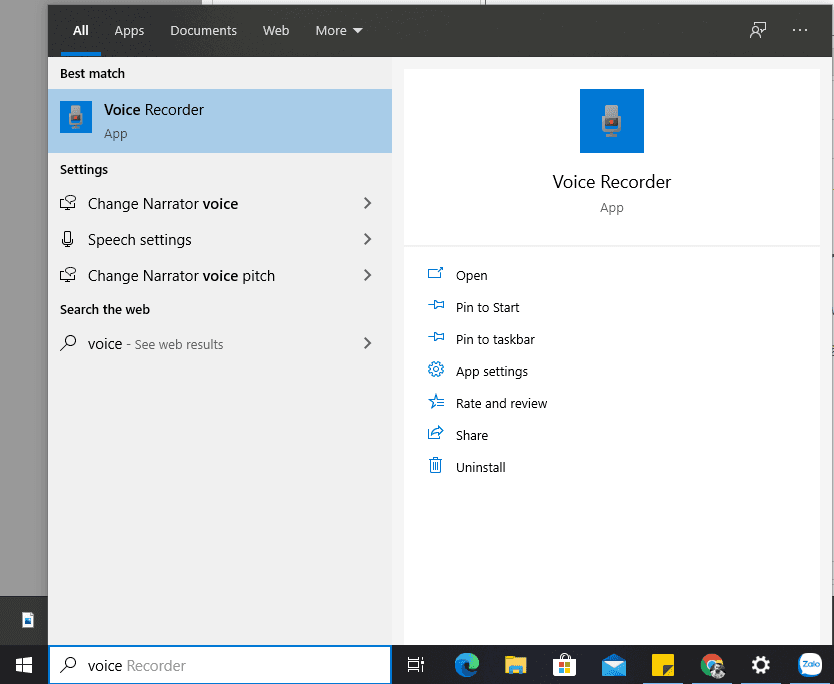 Trên máy tính, laptop sử dụng hệ điều hành Window 10 chúng ta có một ứng dựng hỗ trợ ghi âm có tên Voice Recorder.