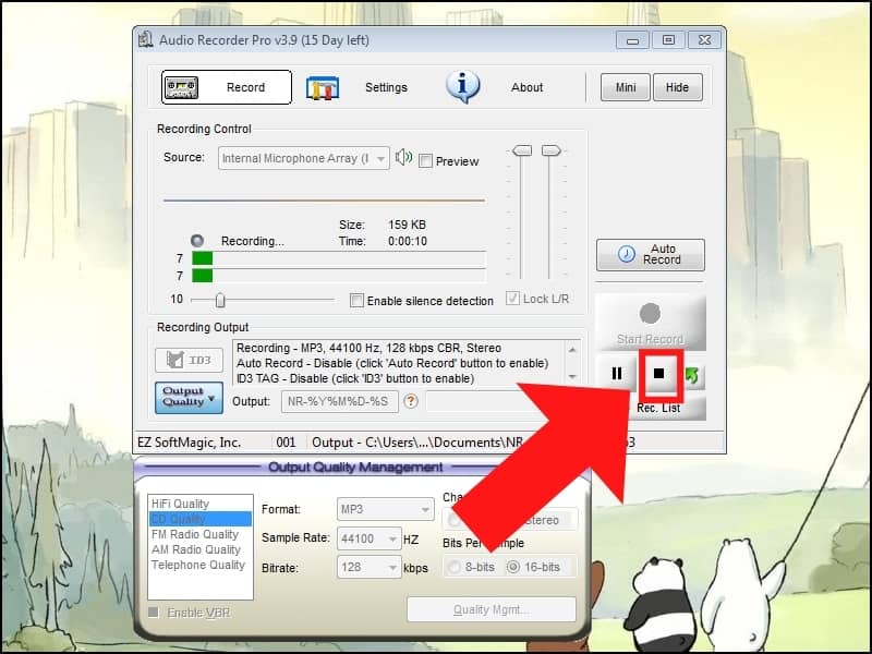 Bước 5: Click vào biểu tượng Stop để ngừng ghi âm.
