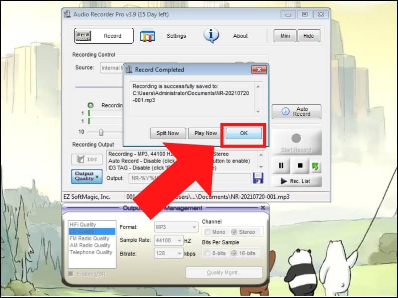 Bước 5 : Nhấn Save để hoàn tất quá trình lưu file ghi âm.