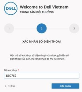 - Người dùng sẽ nhập mã xác thực lấy từ tin nhắn, sau đó nhấn nút “Tiếp theo” nếu nhập đúng hệ thống tự động chuyển sang bước 4.