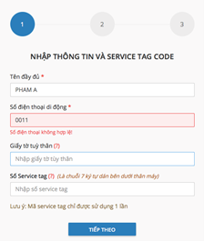 - Số Service Tag: là một chuỗi số tương ứng với một mã thiết bị của Dell, được Dell Việt Nam quản lý, khi khách hàng mua sản phẩm khuyến mại, nhân viên đại lý hướng dẫn khách hàng lấy số Service Tag. Một số Service Tag chỉ được nhập 1 lần duy nhất.