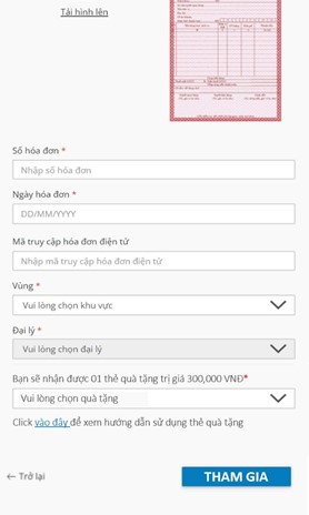 Để tham gia đăng ký chương trình khuyến mại và thực hiện các bước tiếp theo, khách hàng nhấn chọn