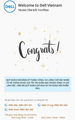 Khách hàng có thể xem thể lệ chi tiết về thời gian, cách thức nhận quà tại website www.doiquadell.com. Mọi thắc mắc khác quý khách vui lòng liên hệ số: 0981 801 041 (khu vực miền Bắc), 0981 801 042 (khu vực miền Trung), 0981 801 043 (khu vực miền Nam).