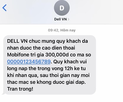 - Nếu thông tin hợp lệ, hệ thống sẽ gửi đến số điện thoại khách hàng đã đăng ký một tin nhắn SMS kèm mã quà tặng đã đăng ký.