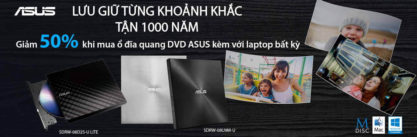 Giảm 50% ổ đĩa quang DVD ASUS khi mua kèm cùng laptop ASUS bất kì.