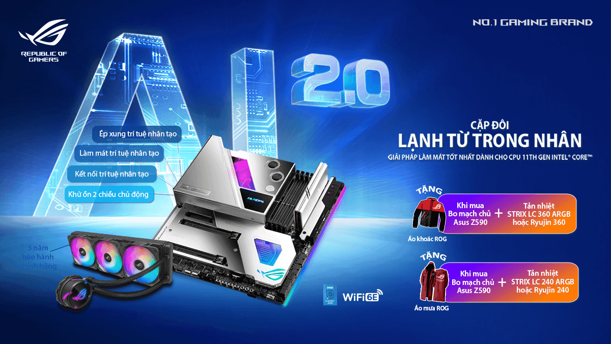 Mua combo bo mạch chủ ASUS ROG Z590 & Tản nhiệt AIO 240/360 tặng áo khoác hoặc áo mưa ROG