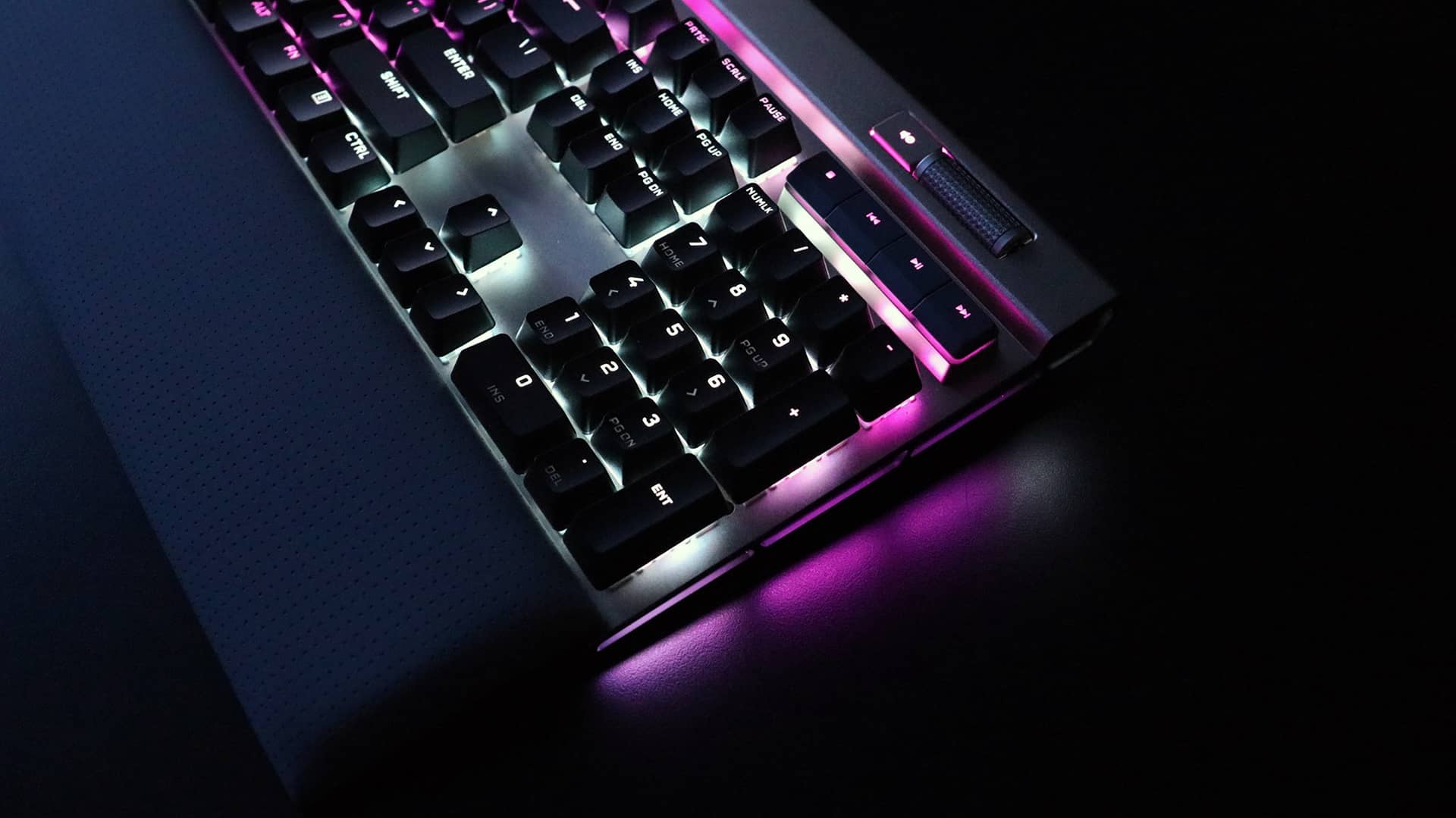 Switch của bàn phím là opto-mechanical, có nghĩa rằng các nút bấm được tăng tốc bởi các tia hồng ngoại. Trong các bàn phím cơ thông thường, mỗi cú nhấn sẽ được nhận diện khi switch chạm đáy. Quá trình đó hoàn thành một mạch, gửi tín hiệu lên máy tính. Các switch opto-mechanical mới của Corsair, như OPX chẳng hạn, không có tấm kim loại đệm ở dưới đáy. Thay vào đó là một đèn lazer đỏ cỡ nhỏ, và khi nhấn phím xuống, nắp phím sẽ gây cản trở và ngắt dòng. Đó là cách bàn phím nhận diện nút nào được bấm, và quá trình này hoạt động nhanh hơn nhiều so với phương pháp sử dụng tấm kim loại như trước.