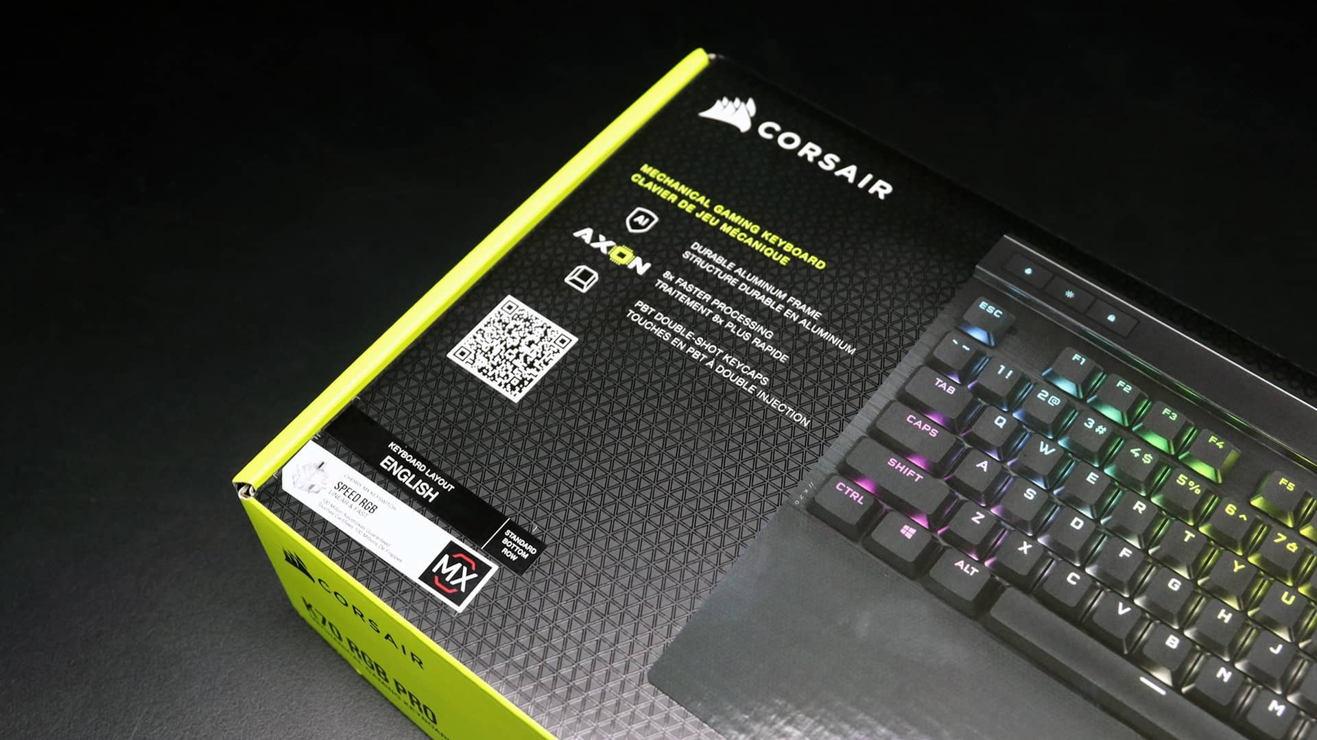 Corsair K70 RGB Pro mới có kích thước đầy đủ, với giá nghỉ tay tháo rời được, có nam châm hút. Các phím bấm được tích hợp đèn RGB cho từng phím, nắp phím PBT 2 lớp, công nghệ AXON và công tắc để chuyển đổi qua lại giữa chế độ Thi đấu và Chơi bình thường.