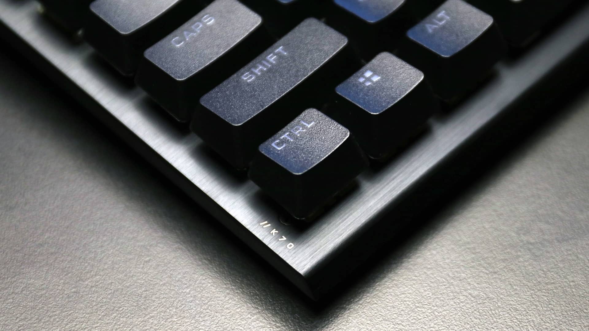 Về chất liệu sản phẩm, bàn phím sử dụng hợp kim nhôm với logo “//K70” ở dưới cùng góc trái. Mặt dưới của sản phẩm là các chân đế cao su chống trượt, và không thể thiếu là chân đế để tăng chiều cao cho thiết bị. Nhìn chung, chất lượng hoàn thiện của K70 RGB Pro tốt, tính năng nhiều, không có quá nhiều điều phàn nàn.