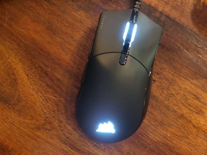 Chuột được tích hợp switch Omron đem lại sự bền bỉ trong quá trình sử dụng, cùng công nghệ AXON của Corsair cho phép tăng tốc độ phản hồi lên 4 lần. Đúng như tên gọi của mình, sản phẩm có đèn RGB ở mặt lưng, nút cuộn và 3 đèn ở cạnh trái hiển thị thông số DPI.