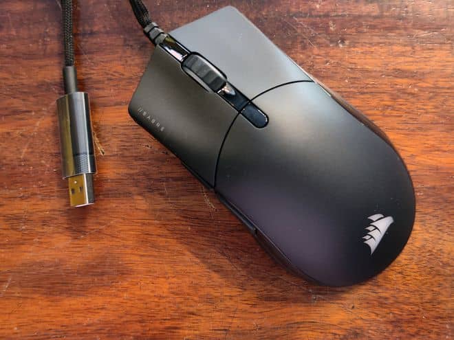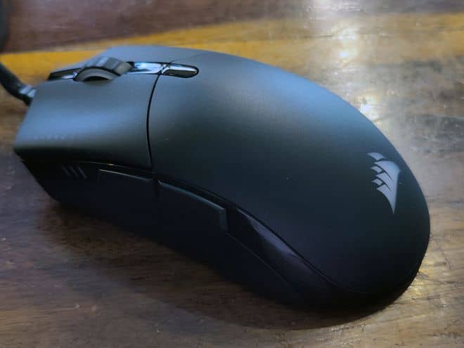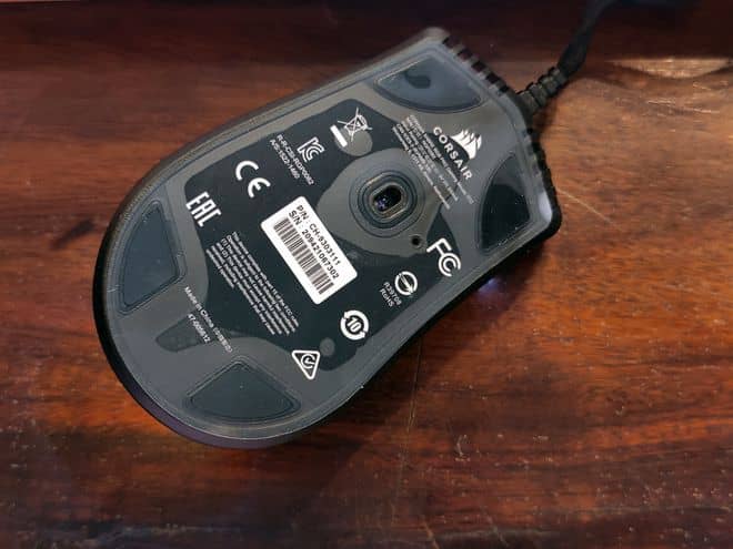 Mặt đáy của sản phẩm được dán các “feet” PTFE, đem lại sự mượt mà trong quá trình di chuột trên các bề mặt khác nhau. Có tổng cộng 7 nút bấm có thể lập trình được trên chuột, người dùng có thể tùy biến thông qua phần mềm iCUE của Corsair cho các nhu cầu chơi game khác nhau.