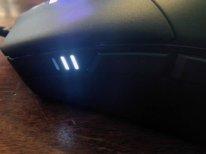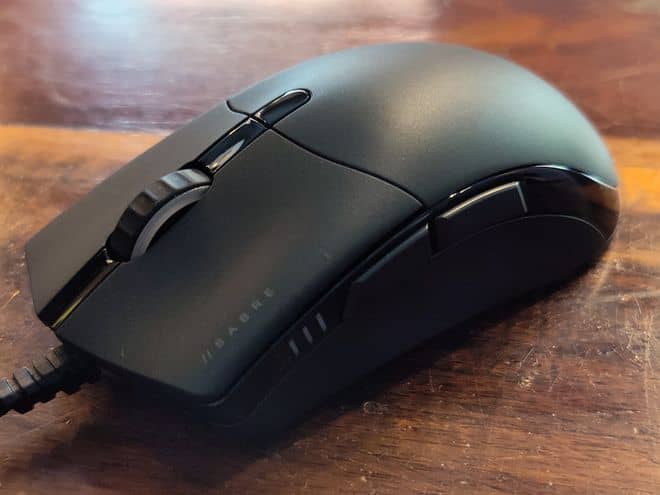 Các nút bấm ở cạnh bên được bố trí hợp lý, vừa tầm với của ngón tay cái. Game thủ có thể sử dụng phần mềm iCUE của Corsair để thiết lập lại các nút bấm ở cạnh bên cũng như 2 nút DPI ở mặt lưng chuột. iCUE cũng có thể được sử dụng để tinh chỉnh hiệu ứng cũng như màu đèn RGB ở mặt lưng và trên nút cuộn của Sabre RGB Pro.